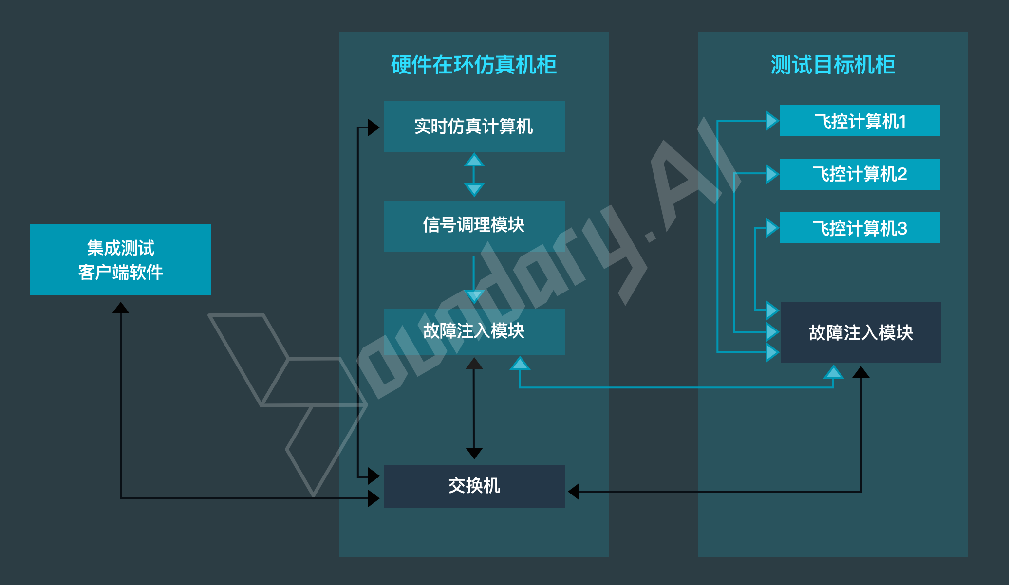 为配合REG300飞控计算机系统的集成测试,边界智控同步设计了飞控电子集成验证环境。可基于eVTOL主机客户的顶层需求,对REG300飞控计算机设备及其软硬件进行集成测试和仿真验证,平台方案如下: