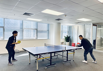 我们也在提升员工舒适感上做出了很多努力,健身房、升降桌、茶水间等等一应俱全,打造人性化的办公氛围。心情好,好的创意自然就会跑出来。