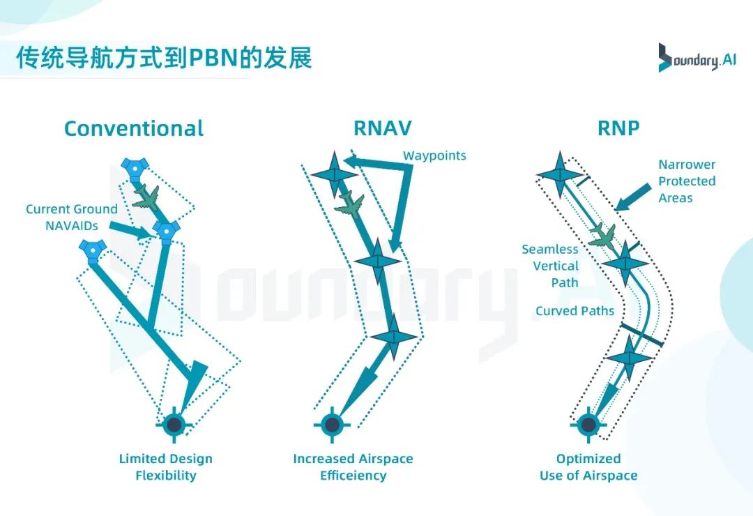 在20世纪90年代引入卫星导航系统(GNSS)后,飞管系统的导航源优先选择以GNSS或组合导航提供的位置,飞机可不依赖于无线电导航台,实现了卫星导航覆盖地区任意飞行(RNAV)。随着卫星导航精度的提升以及卫星增强系统的应用,飞管系统增加了机载导航性能监视和告警功能,可提供所需导航性能(RNP)程序运行,满足了基于性能的导航(PBN)运行响应的规范要求。