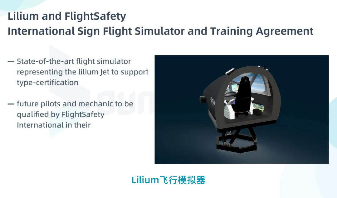 除Joby外,德国的Lilium也在积极推进飞行仿真系统研制工作。专业航空培训公司Flight-Safety International为Lilium提供包括沉浸式设备和驾驶舱的飞行模拟器(e-Sim),该模拟器将被整合到地面飞机系统集成实验室中,为飞机系统需求验证提供适当的环境。e-Sim不仅使飞行员能够在飞行测试开始之前熟悉飞机功能和操纵特性,还可以作为符合性验证环境,为Lilium的型号认证提供支持。