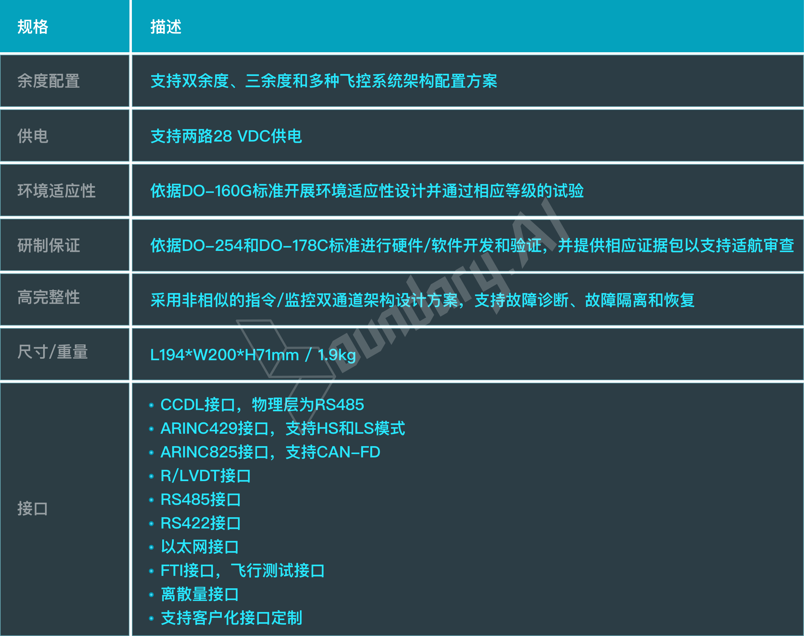 REG300飞控计算机拥有丰富的接口配置,支持高完整性的指令计算能力,具体技术规格如下: